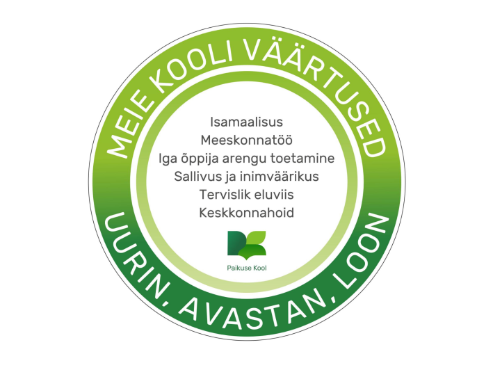 Tervislik eluviis – väärtustame liikumist, mitmekülgset ja tasakaalustatud toitumist ning ööund. Kool toetab tervislikku eluviisi, pakkudes ainetundides liikumistegevusi, vahetundidel õues viibimise võimalust ja mitmekülgseid õuesõppe võimalusi. Oleme liikudes rõõmsad!