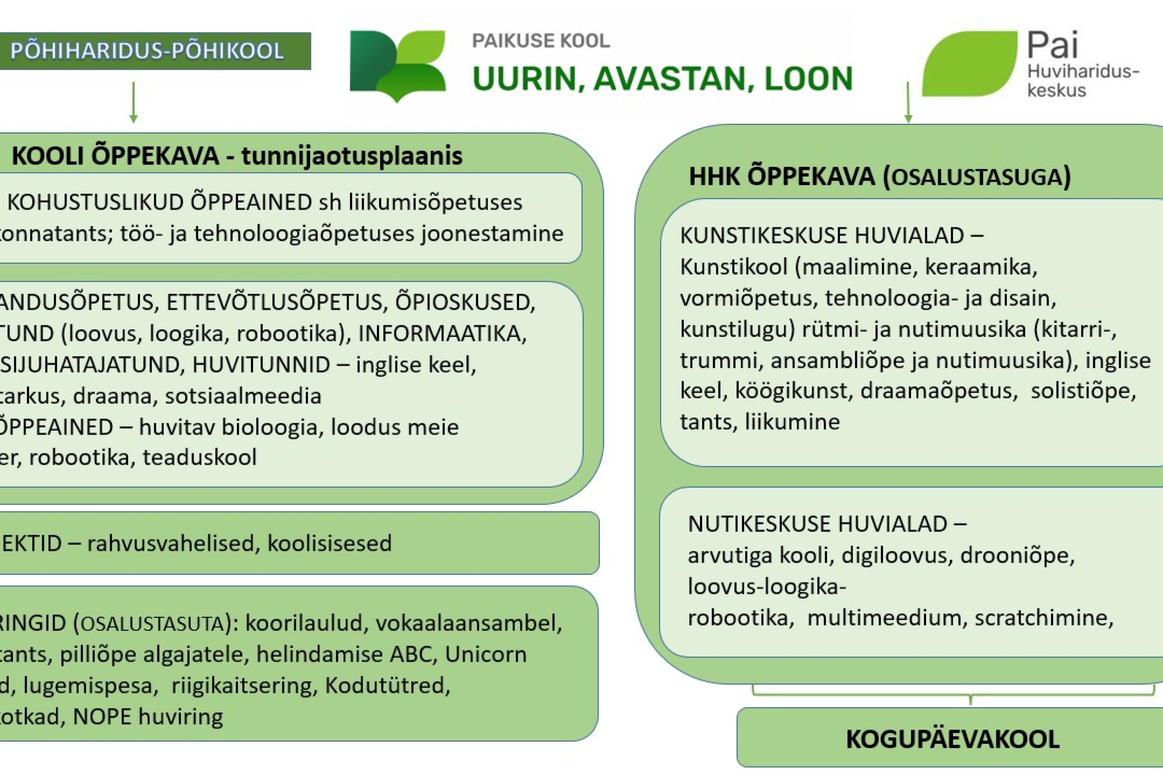 Lisaks riiklikus õppekavas olevatele kohustuslikele õppeainetele saab õppida: