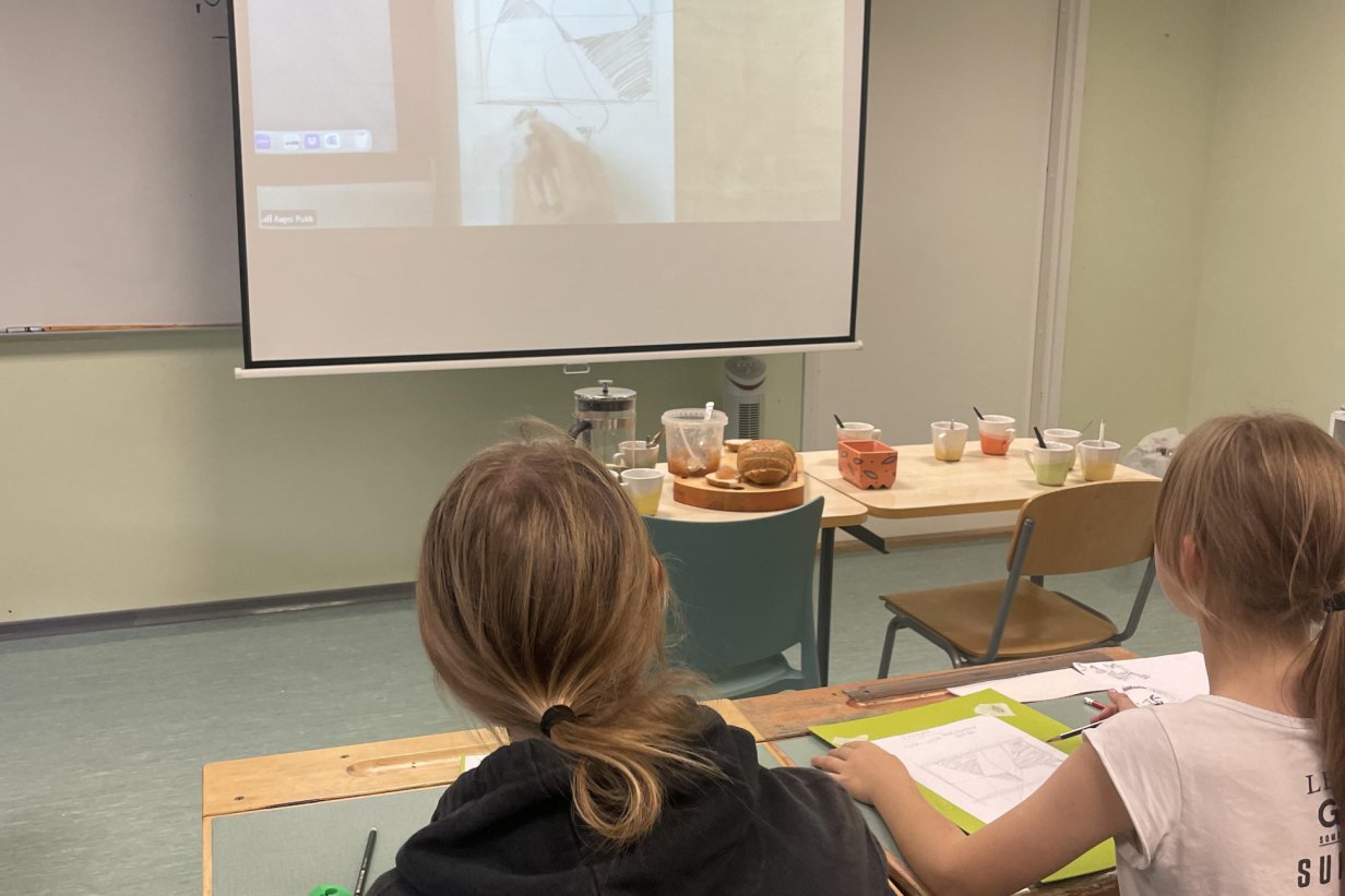 Huvihariduskeskuse kunsti põhiõppe õpilased osalesid täna Aapo Pukk'i veebitunnis, kus kunstniku juhendamisel puudutasime termineid ja lähenemisi, mis kuuluvad kujutava kunsti alustalade juurde: silmamôôt, proportsioonid, graafika ja maalilisus, ruumilisus, joonkompositsioon ja heletumeduse kompositsioon, valgus-vari, vaatenurk, üldistus ja tervik. Aapo Pukk tegi ekraanil ette, õpetajad ja noored kunstnikud püüdsid järgi teha.
