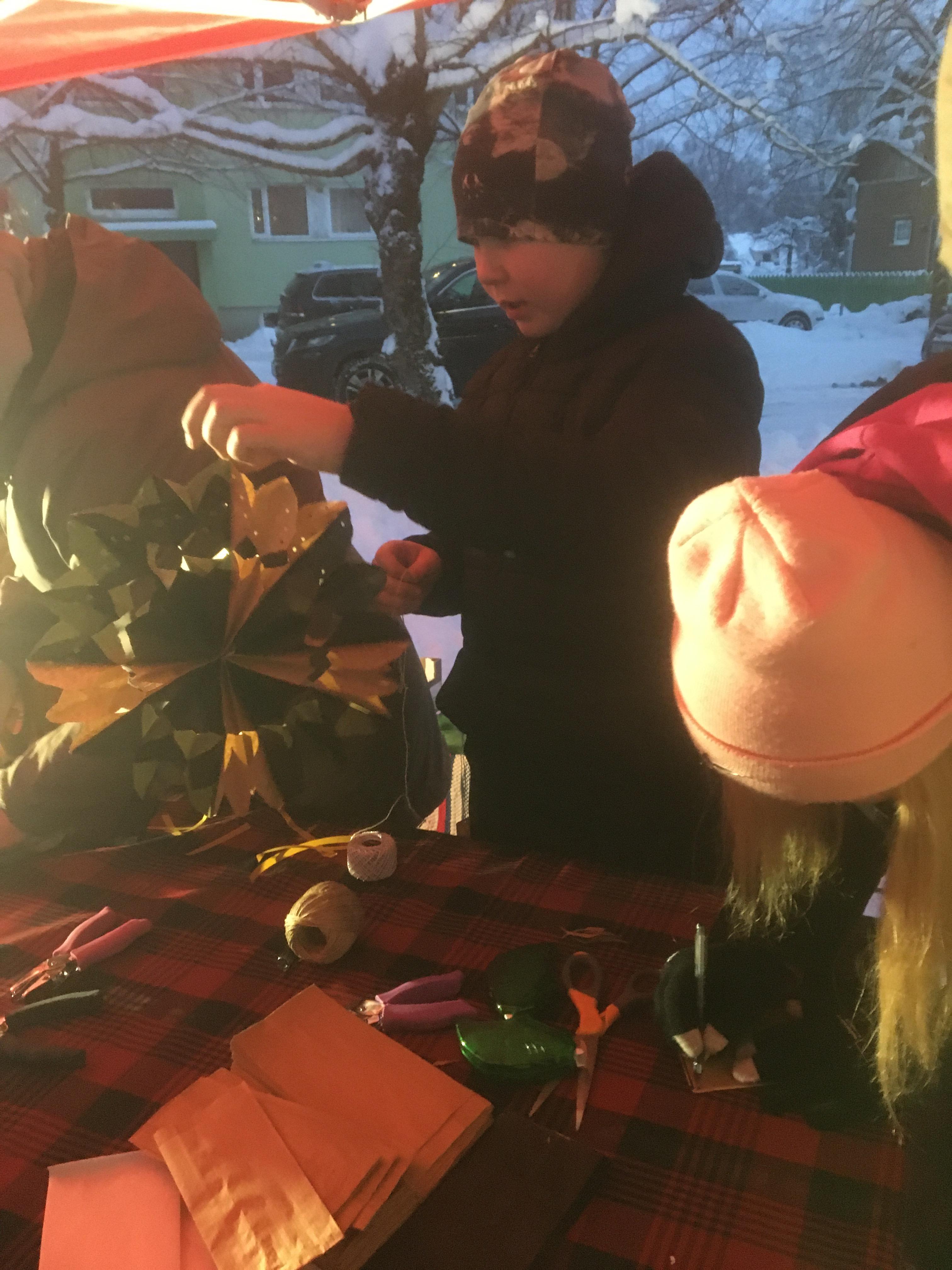 Õpetaja Rita rahvatantsulapsed tantsisid ja huvihariduskeskuse töötoas sai õppida lihtsaid nippe jõulukaunistuste valmistamiseks.