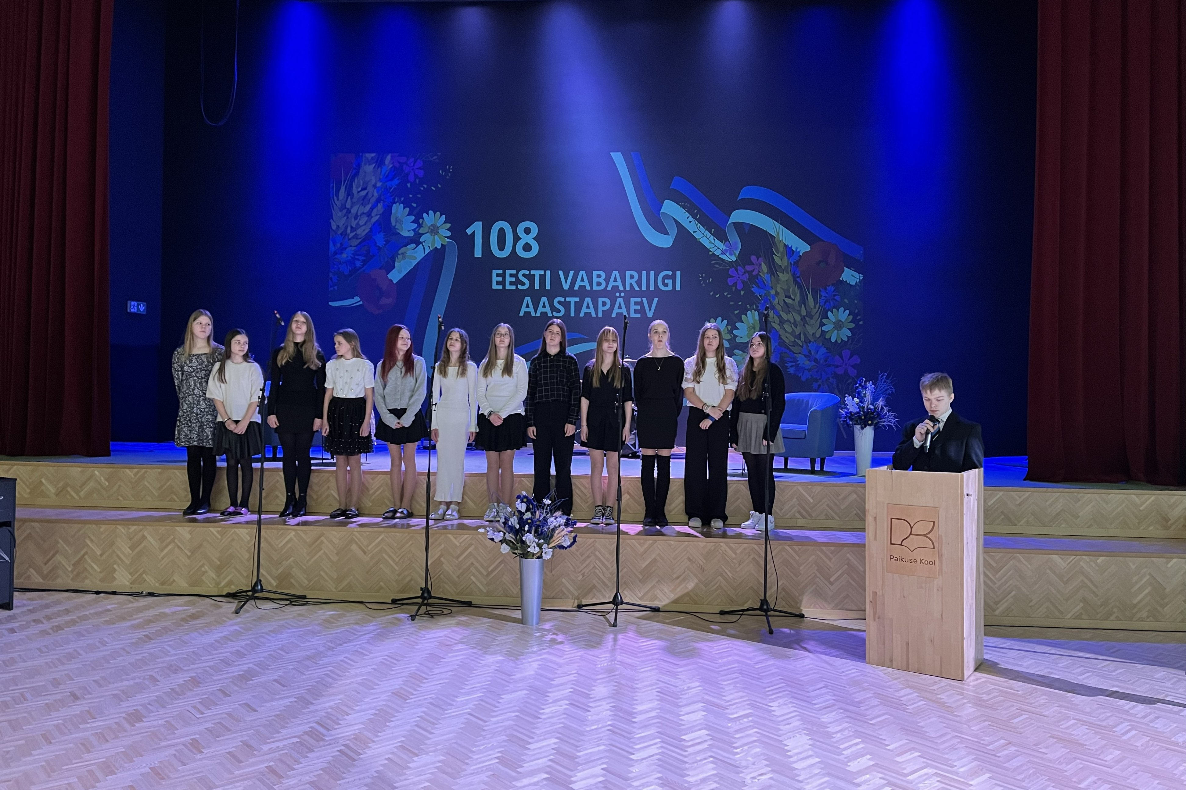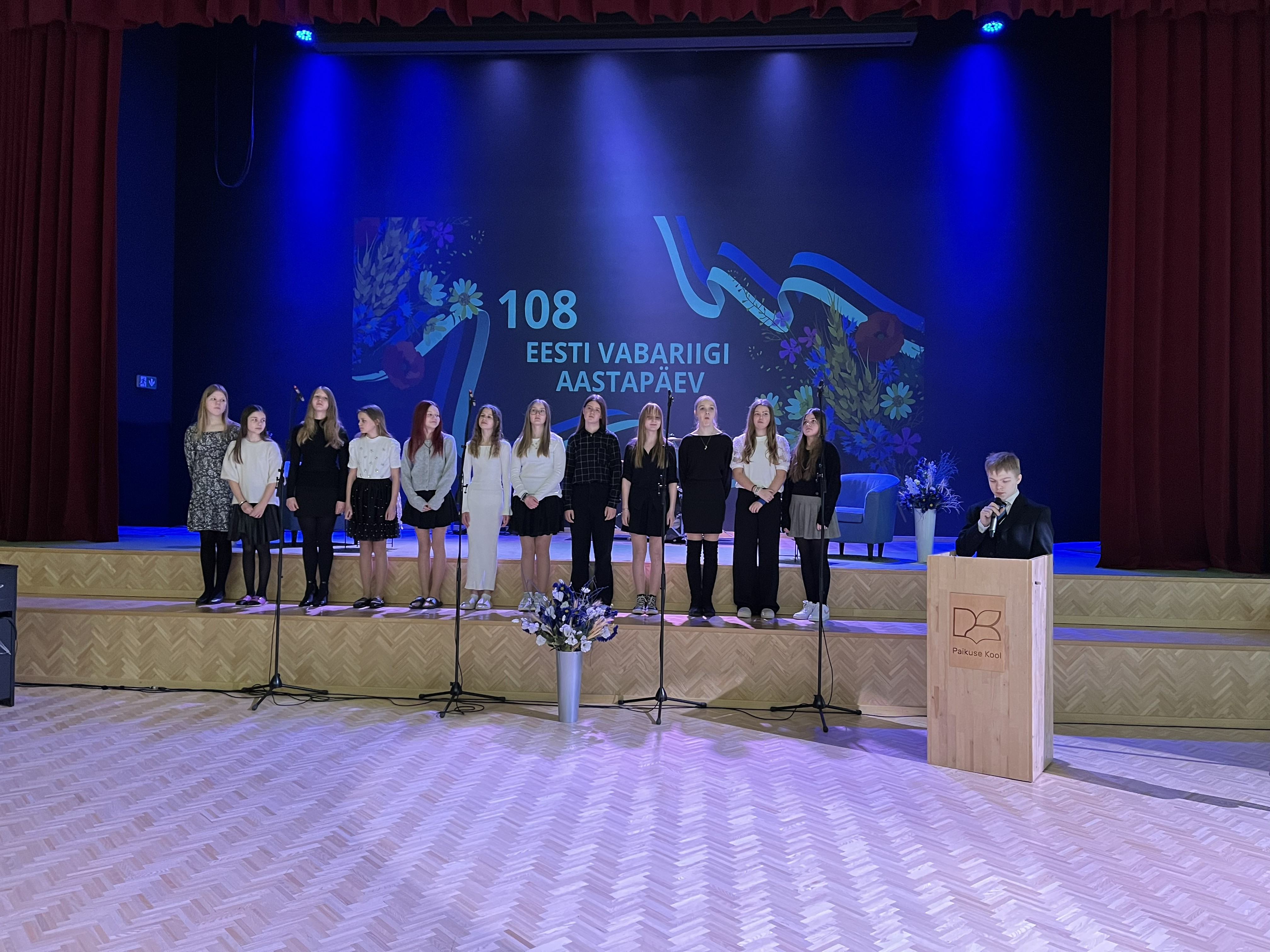 20. veebruar oli Paikuse Koolis tõeliselt pidulik päev: sini-must-valged riided, kaunistatud kooliruumid, temaatilised klassijuhatajatunnid, südamlikud aktused. Kõik tähistamaks väärikalt eelseisvat Eesti Vabariigi 108. sünniaastapäeva.