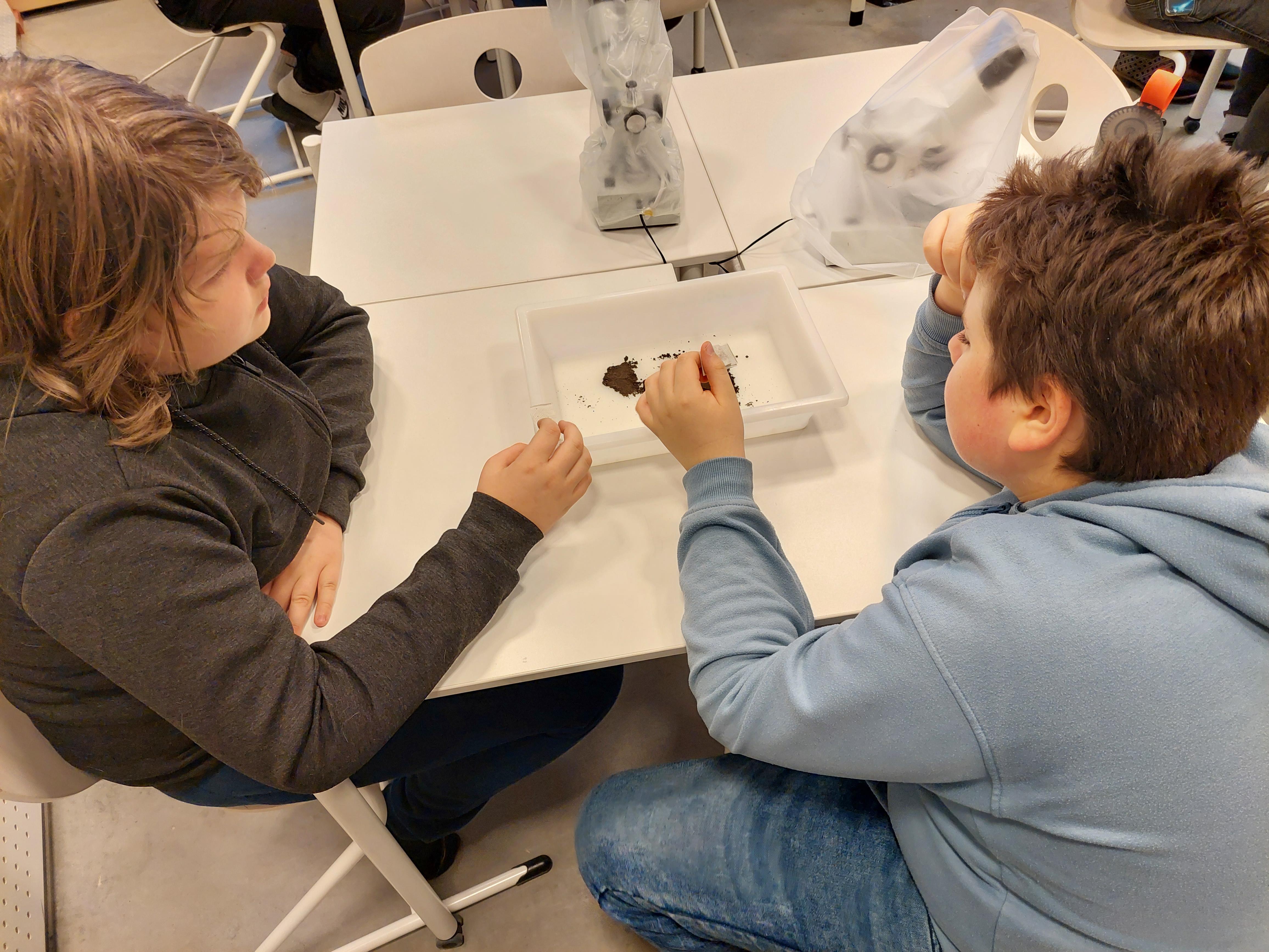 Õuest toodud mullaproovi sai uurida ka mikroskoobi all ning võrrelda seda kompostmulla elustikuga.