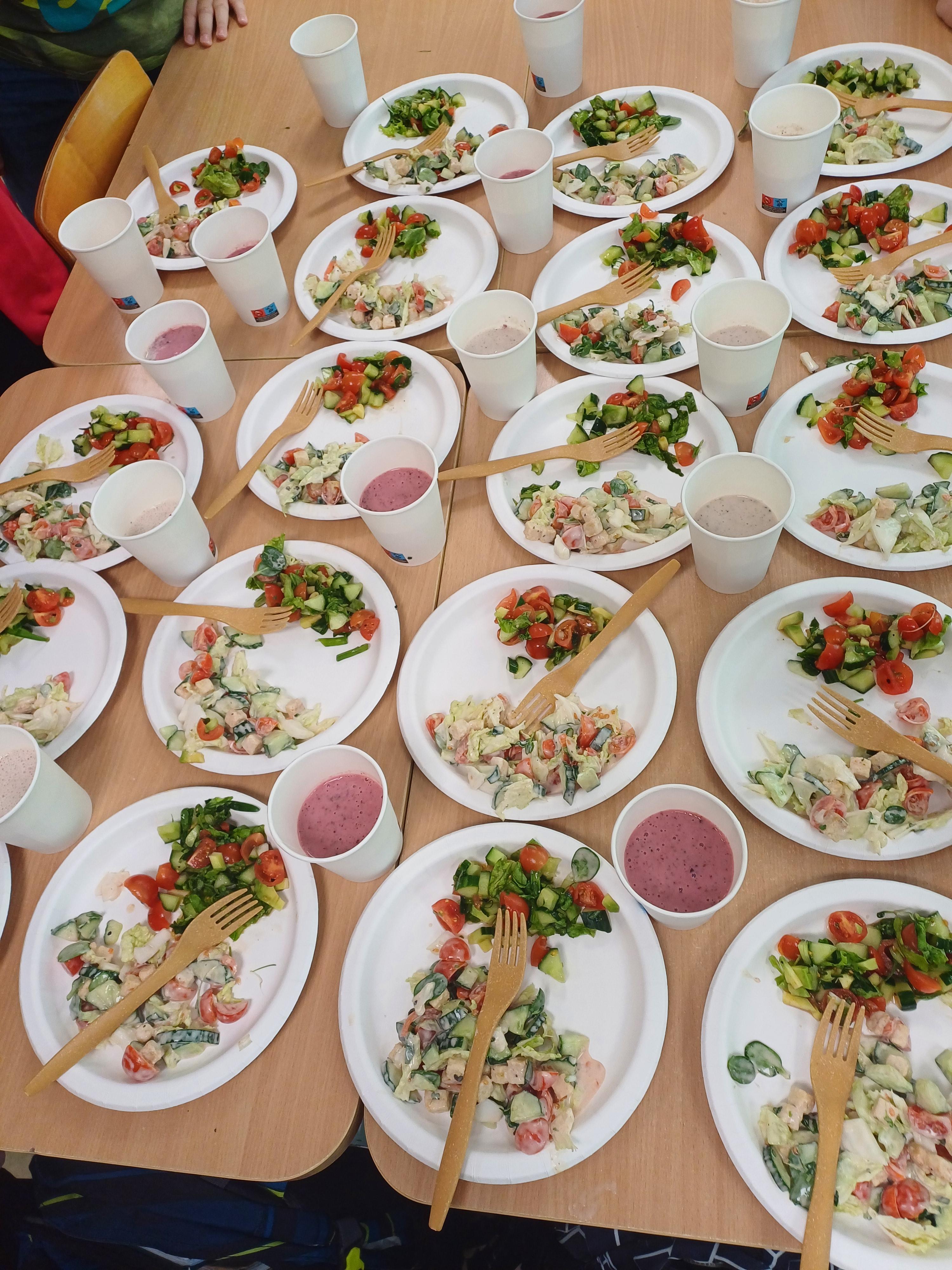 Lõpuks otsustasid õpilased valmistada Caesari salatit, rohelist salatit ja smuutisid.