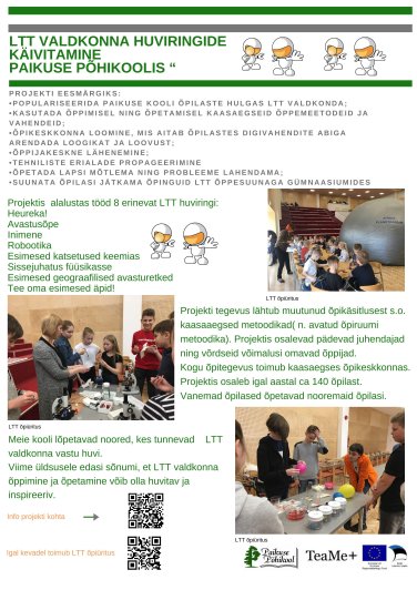 - Paikuse Põhikoolis on käivitunud LTT huviringid, mis on jätkusuutlikud ka peale projektiperioodi lõppemist.