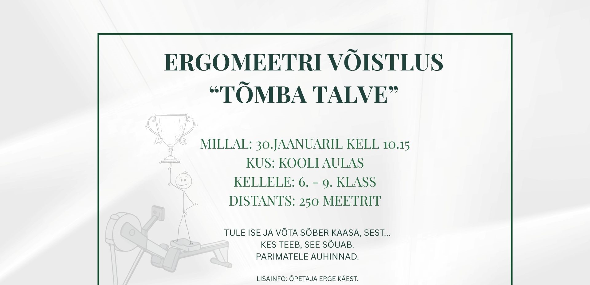 30. jaanuaril on vahva võimalus võistelda ja iseennast proovile panna. Parimatele auhinnad! Ava foto Viimati muudetud 26.01.2026.