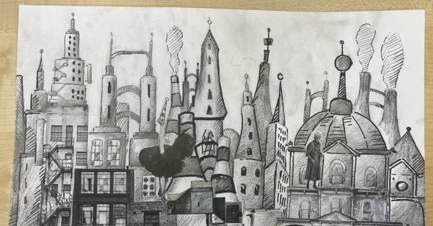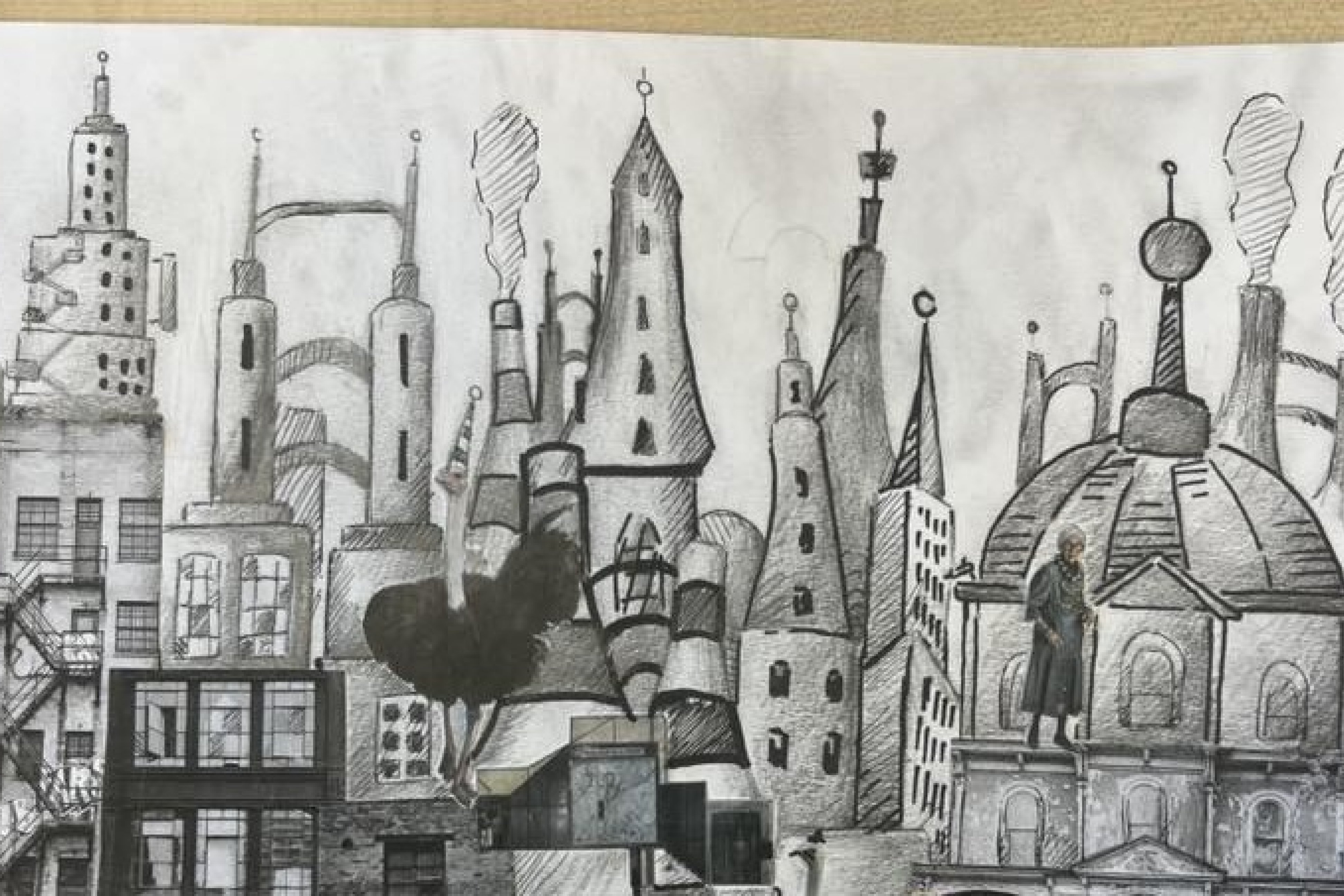 Fotol 1. koha saanud Rasmus Välimäe joonistus linnast