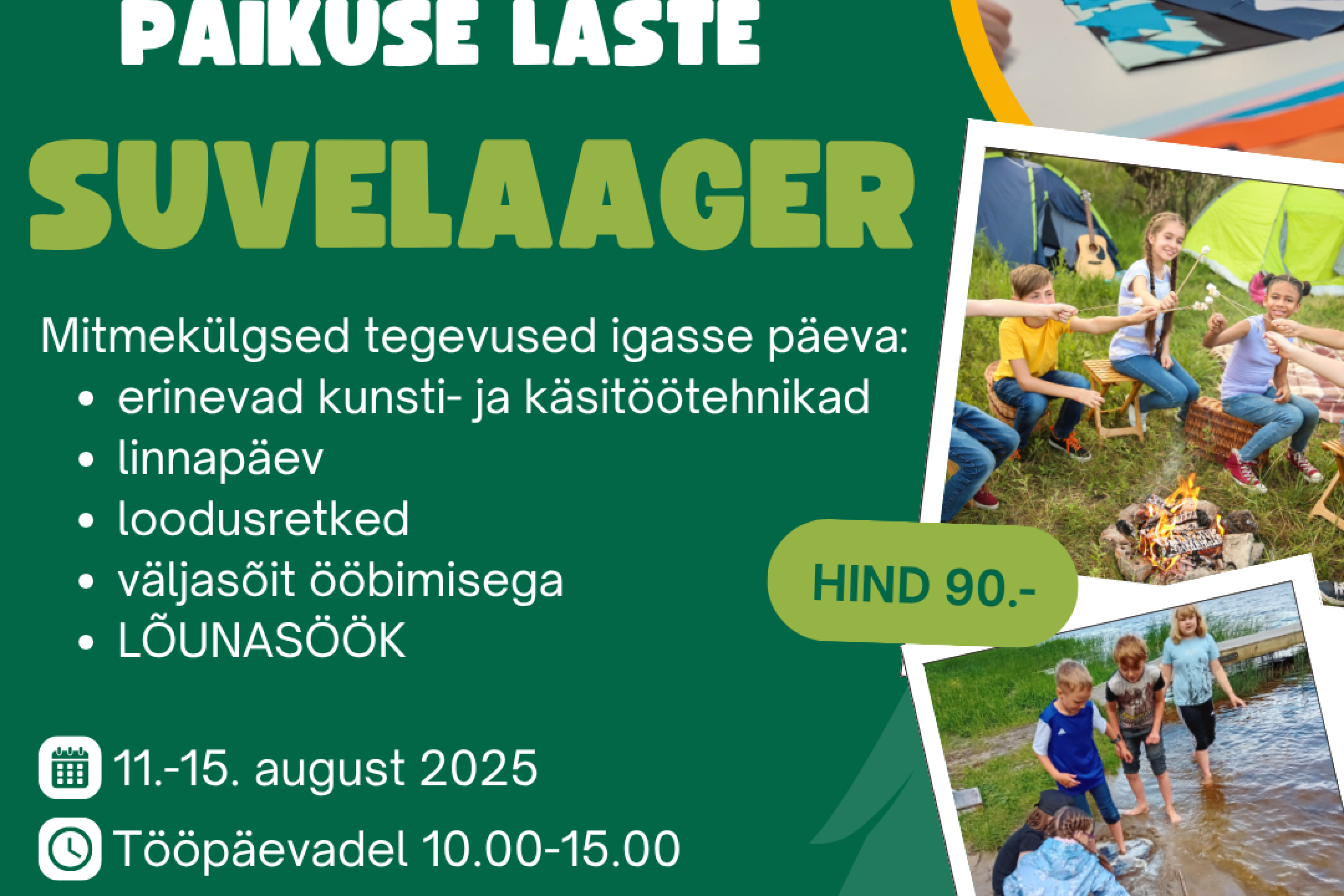 Suvi on aeg, mil rutiin jääb koolimajja ja algab midagi palju põnevamat. Kui sul on soov midagi uut proovida, end loominguliselt väljendada, avastada loodust, veeta aega koos toredate kaaslastega ja kogeda päris oma väikest laagriseiklust – siis oled just see, keda me ootame!